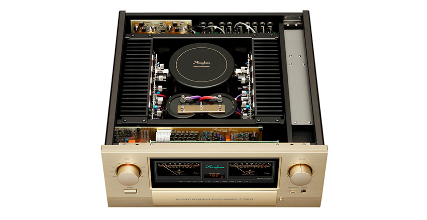 E-5000 to najnowsza flagowa integra Accuphase, opracowana na 50-lecie firmy. Zapewnia niespotykaną moc wyjściową przy zachowaniu jakości porównywalnej z E-800. Sekcja wzmacniacza mocy osiąga 240 W/ch (8 Ω) i 320 W/ch (4 Ω) poprzez równoległe sterowanie pięcioma tranzystorami mocy, osiągając wydajność i jakość dźwięku porównywalną z monoblokami. Głośnością steruje tu najlepszy, w pełni zbalansowany układ AAVA, przez który przechodzi także sygnał potencjometru balansu kanałów.