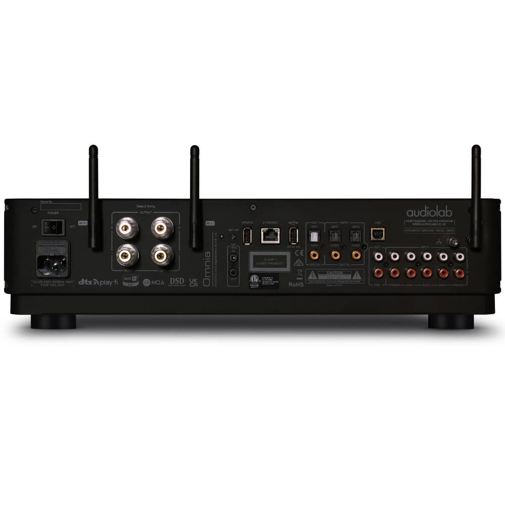 Do odtwarzania dźwięku z sieci, Audiolab Omnia jest wyposażony w port Ethernet, który nadaje się do połączenia przewodowego i większych wymagań przepustowości cyfrowego dźwięku o wysokiej rozdzielczości.
