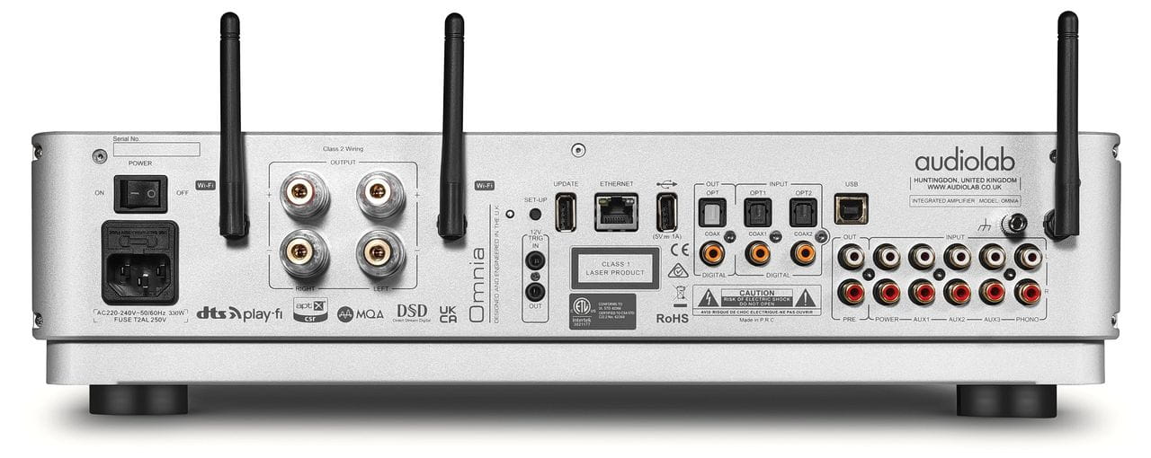Do odtwarzania dźwięku z sieci, Audiolab Omnia jest wyposażony w port Ethernet, który nadaje się do połączenia przewodowego i większych wymagań przepustowości cyfrowego dźwięku o wysokiej rozdzielczości.