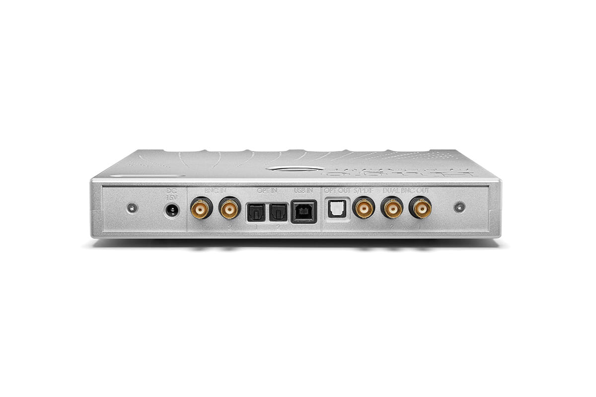Hugo M Scaler wyposażony został w pięć wejść cyfrowych (2x BNC, 2x optyczne, USB Type-B), oferujących szeroki wachlarz połączeń. Wejście USB jest kompatybilne z plikami DSD i PCM (do DSD 256), gdzie DSD jest upsamplowane do PCM przy użyciu opatentowanego filtrowania dającego większe możliwości wyciszenia szumów i zakłóceń obecnych w DSD.