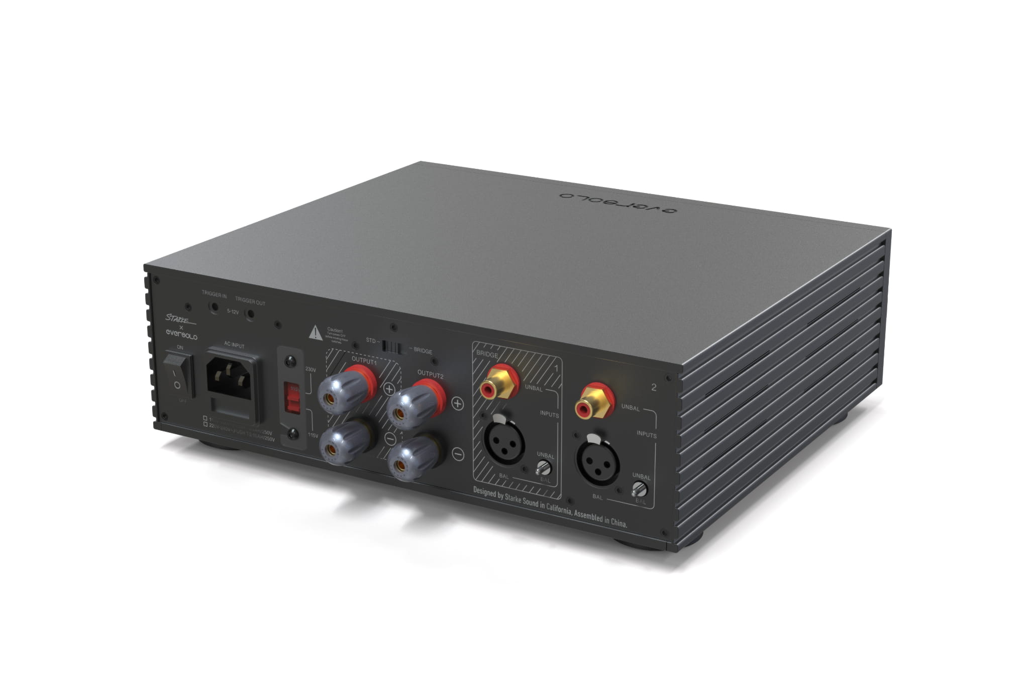 Wzmacniacz EverSolo AMP-F2 posiada nowoczesną, solidną aluminiową obudowę. Wygląda estetycznie, ale działa również jako ekran, ograniczając wpływ zakłóceń na obwody AMP-F2.