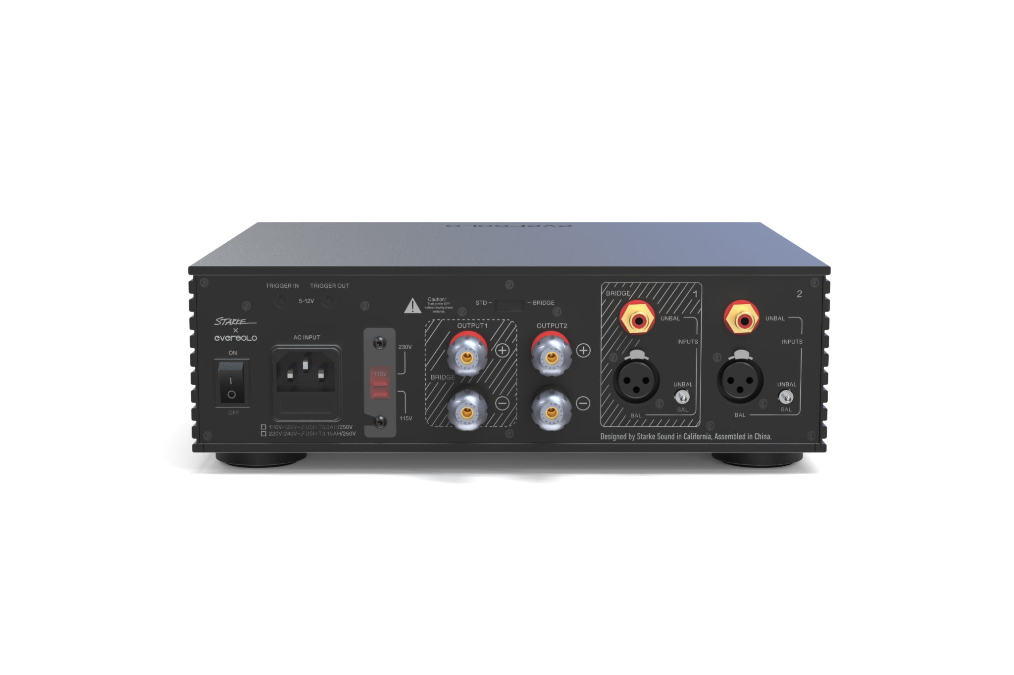 Oparty na module wzmacniacza klasy D NS600 firmy Starke Sound, EverSolo AMP-F2 jest w stanie dostarczyć znaczną moc - do 2x250 W RMS przy 4 Ohm (1% THD). Gdy wzmacniacz jest używany w trybie mostkowym (BTL), czyli w trybie mono, jego moc wzrasta do 450 W RMS przy 2 Ohm (1% THD). Ta zdolność do obsługi bardzo niskich impedancji obciążenia zapewnia wystarczającą moc nawet w konfiguracjach wykorzystujących szczególnie wymagające kolumny.