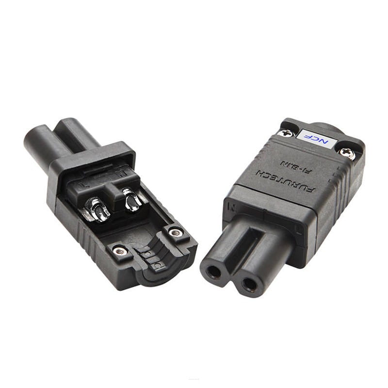 Wtyk zasilający IEC typ 8 na przewód. Wszystkie metalowe części wykonano z niemagnetycznych materiałów (brąz, oraz miedź ) powlekanych rodem. Montaż przewodów - lutowany.