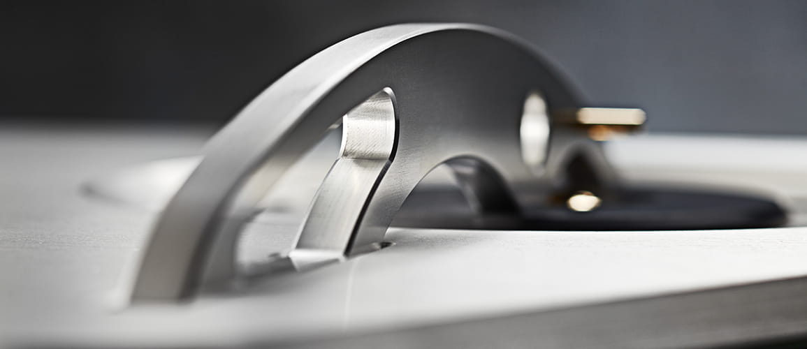 - Ramię docisku wykonane ze szczotkowanego aluminium