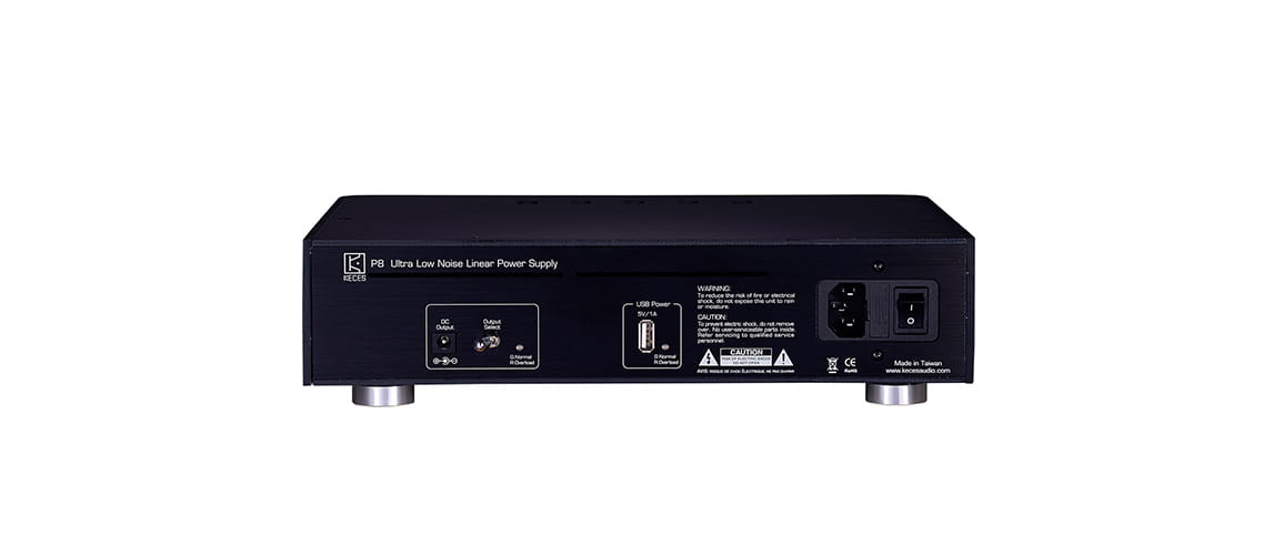 Zasilacz Keces P8 przeznaczony jest do zastosowania w systemach audio składających się z komponentów niewielkich rozmiarów – np. biurkowych systemów komputerowego audio. Dzięki wyposażeniu w dwa wyjścia o zmiennym napięciu [od 5 do 24V], może on zasilać wzmacniacze słuchawkowe, przetworniki cyfrowo-analogowe a nawet gramofony. Dodatkowym wyposażeniem jest zasilane gniazdo USB 5V 1A, doskonałe do zasilania przetworników USB i poprawy jakości ich brzmienia.