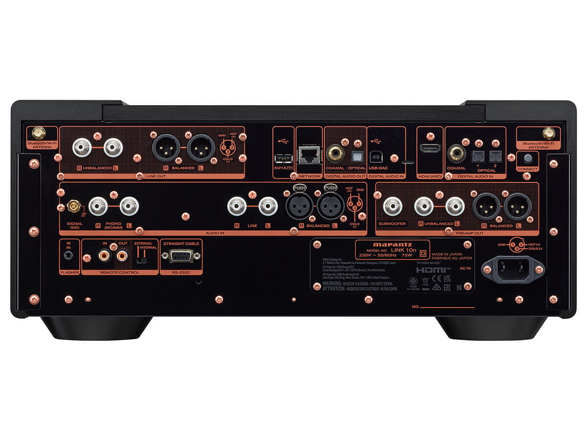 Funkcja przedwzmacniacza: LINK 10n może działać jako kompletny przedwzmacniacz front-end dla twojego systemu, ze wszystkimi funkcjami nowoczesnego systemu stereo klasy high-end. Wyposażony w pojedyncze i zbalansowane wejścia analogowe, wejścia cyfrowe oraz korektor Marantz Premium Phono EQ obsługujący zarówno wkładki MM, jak i MC, jest również w pełni funkcjonalnym przedwzmacniaczem nawet dla systemów stereo o najwyższej wydajności.