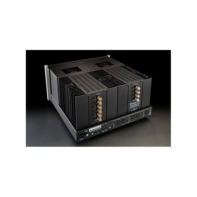 Cztery monitory McIntosh Monogrammed Heatsinks ™ są widoczne, gdy patrzy się na górę urządzenia, podobnie jak transformator i zasilacz.