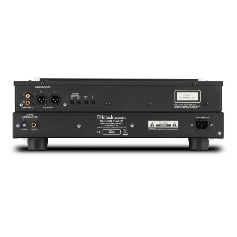 MCD350 to purystyczny odtwarzacz płyt SACD oraz CD, a także płyt z nagranymi plikami MP3 lub WMA. Posiada wyjścia analogowe RCA i XLR o stałym poziomie sygnału a także cyfrowe wyjścia koncentryczne i optyczne. Wszystkie wyjścia elektryczne mają złocone styki.