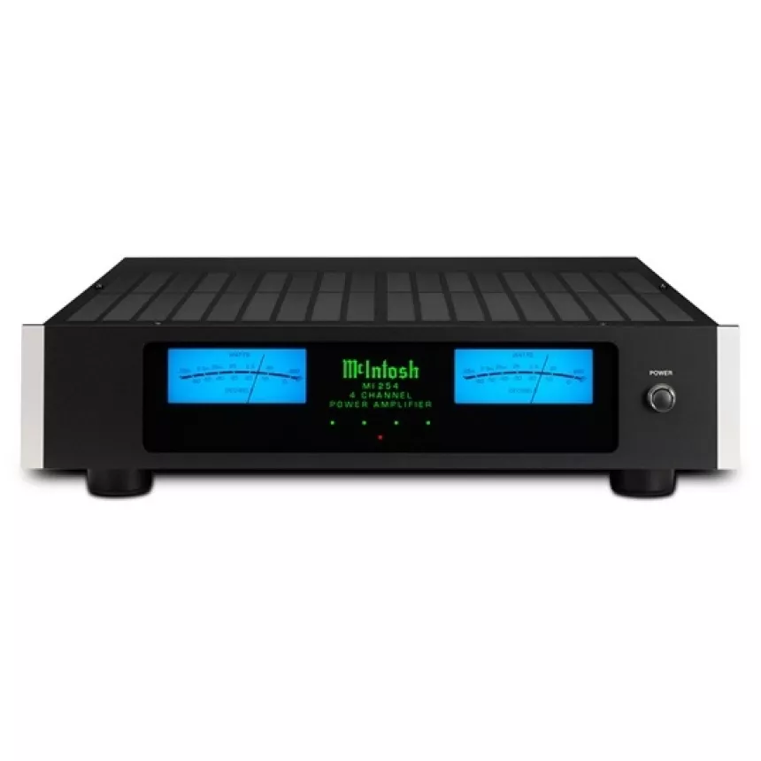 Na przednim panelu, MI254 wyposażony jest w wielobarwne wskaźniki LED, które informują o stanie każdego kanału. MI254 zawiera również dwa niebieskie mierniki McIntosh Watt, które wyświetlają sumaryczną moc wyjściową kanałów 1 + 2 i kanałów 3 + 4. Tylny panel MI254 wykorzystuje nasze standardowe 5-drożne kolumny głośnikowe.