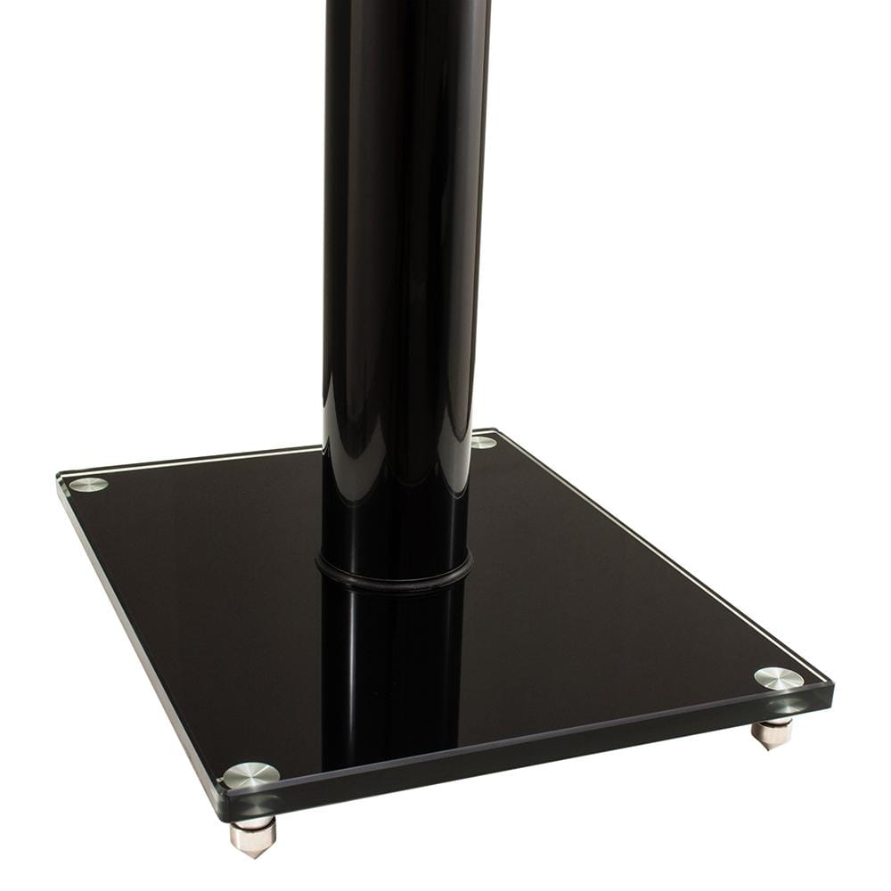 Kanał dla kabli głośnikowych Stabilne, duże srebrne kolce Silikonowe podkładki na górnej i kolce na dolnej płycie Wykończenie czarny połysk Hartowane szkło na górnej i dolnej płycie Średnia filaru: 6 cm |